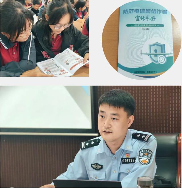 童露露副局長緊扣青少年法制教育與安全防護(hù)的核心需求,將電信網(wǎng)絡(luò)詐騙防范作為宣講的核心內(nèi)容。課堂伊始,他先組織同學(xué)們觀看防范電信網(wǎng)絡(luò)詐騙宣傳視頻,視頻以直觀鮮活的形式普及反詐普法知識(shí),系統(tǒng)梳理了虛假中獎(jiǎng)、刷單返利、冒充客服等常見詐騙套路。隨后,童副局長結(jié)合視頻內(nèi)容與真實(shí)案例,聲情并茂地剖析各類涉詐違法犯罪的隱蔽特征與法律后果,引導(dǎo)同學(xué)們逐步構(gòu)建起 “識(shí)詐、防詐、反詐” 的法制安全防線?;顒?dòng)現(xiàn)場,工作人員為每位同學(xué)發(fā)放了防范電信網(wǎng)絡(luò)詐騙宣傳手冊,同學(xué)們專注翻閱、認(rèn)真記錄,將法制知識(shí)與安全技巧深深鐫刻于心。